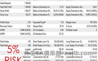 此 EA 的最大回撤百分比相对较低,允许在小额存款上使用此顾问。
