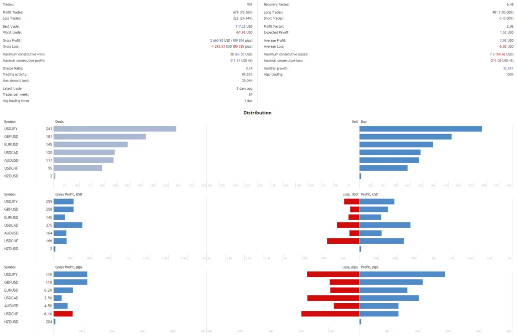 账户监控作者以 1000 美元的存款交易七对,而每个货币对的建议存款应至少为 500 美元。