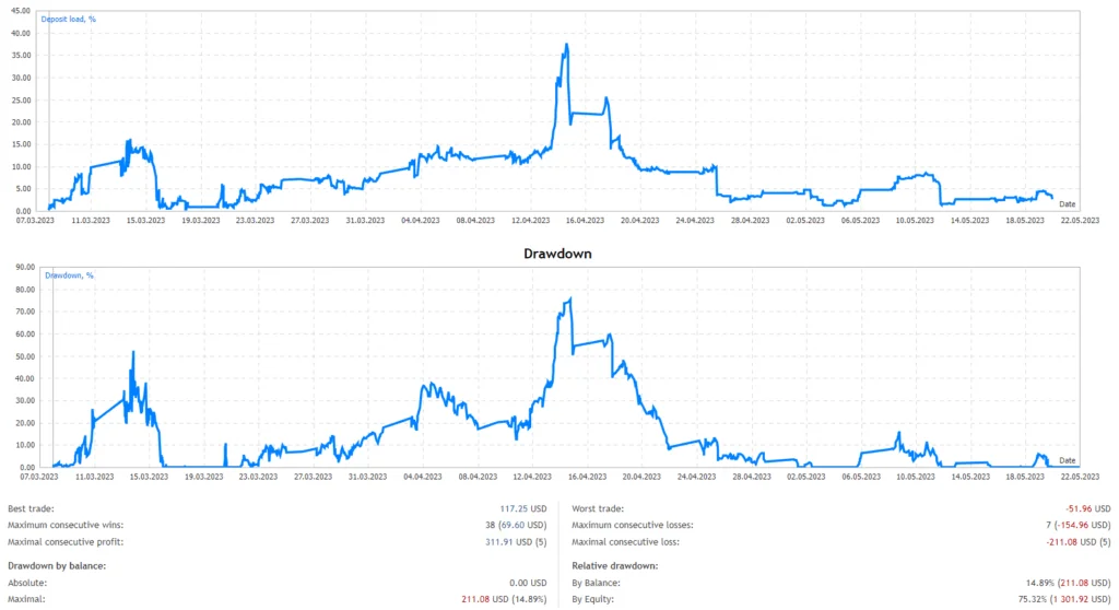 道具公司机器人也有一个 MQL4信号 账户。从随附的屏幕截图中观察到, 最大回撤为 75%。