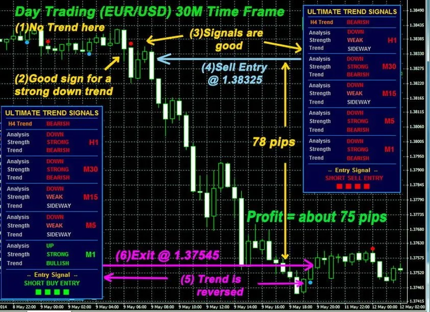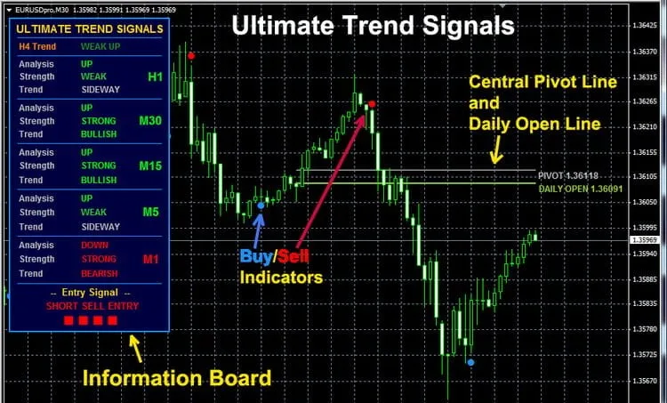 终极趋势信号是一个提供简单易懂买卖信号的指标系统。这套系统通常月费为47美元,非常适合剥头皮交易者和日内交易者使用。