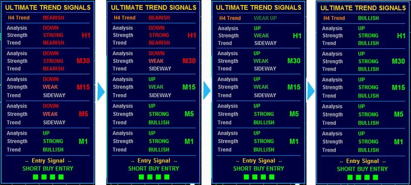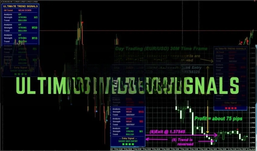 终极趋势信号指标系统可用于任何外汇货币对,以及其他资产类别,如股票、大宗商品、加密货币、贵金属、石油、天然气等。你也可以在任何最适合你的时间框架上使用它,从1分钟图到1月图都可以。