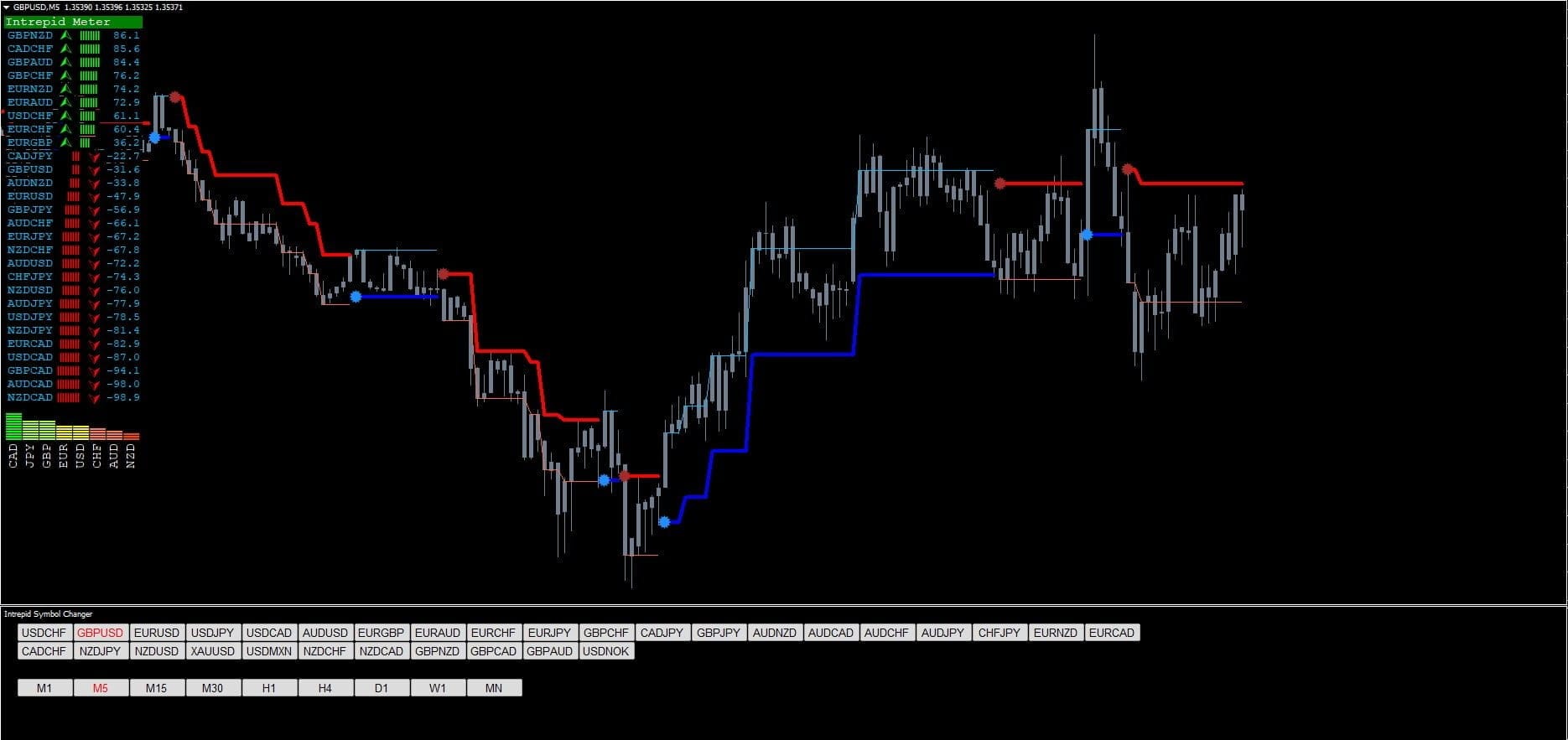 它能捕捉快速且有利可图的价格波动,并提供简单的买入/卖出信号。每个交易信号都经过系统仔细验证,以确保只产生高概率的交易。Intrepid 系统配备了交易者所能想到的一切功能,包括一个智能专业指标。你无需是专业人士即可使用,只需将指标加载到图表上,即可开始捕捉点数。