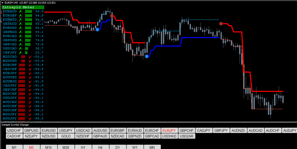 该 Forex Intrepid 指标系统可用于任何外汇货币对以及其他资产,如股票、大宗商品、加密货币、贵金属、石油、天然气等。你也可以在任何最适合你的时间框架上使用它,从 1 分钟图到 1 月图都可以。